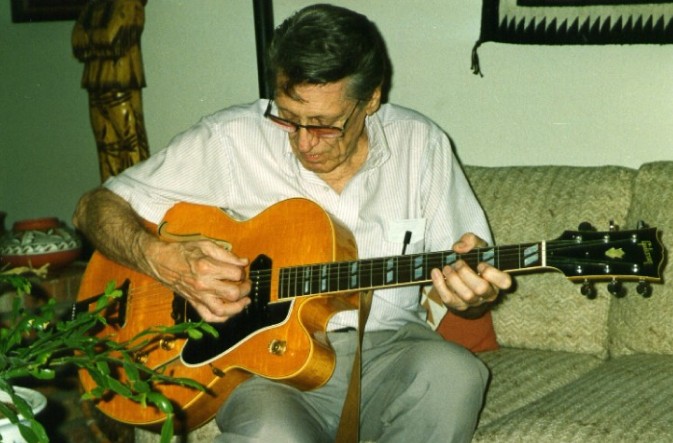 Tal Farlow enjoying my Gibson ES-350 (5/11/1995) |